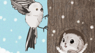 だいぶ前に描いたものですが、北海道も雪の季節になったので載せてみました。昼行性と夜行性の二匹がこんな風に顔を合わせるなんて現実ではどうなんだろう?と思いましたが、絵の中では自由だろうと思いまして描いたのを覚えています。エゾモモンガをもっと可...